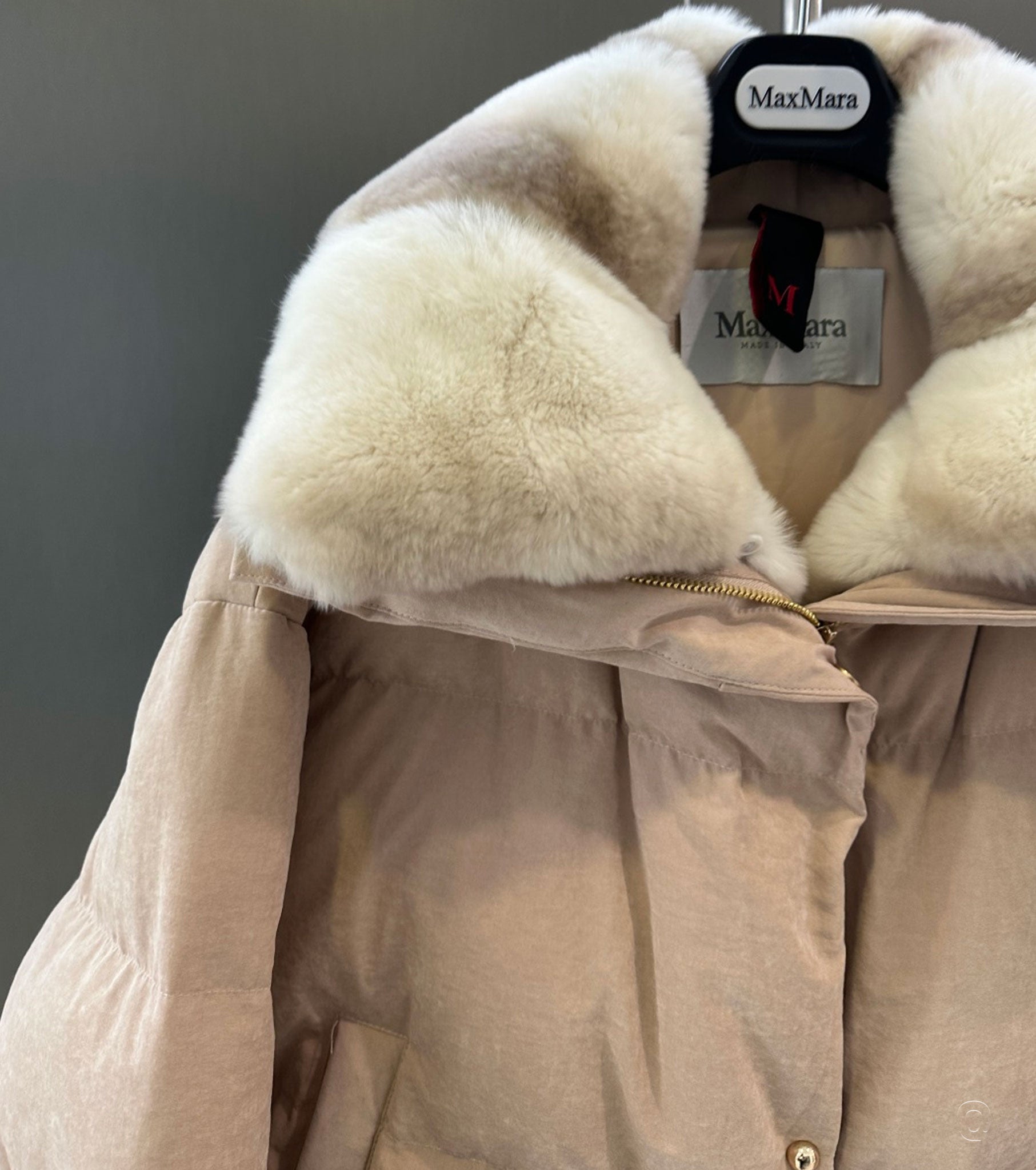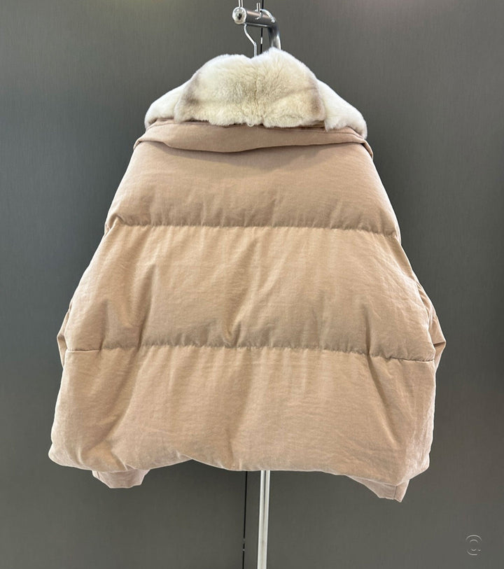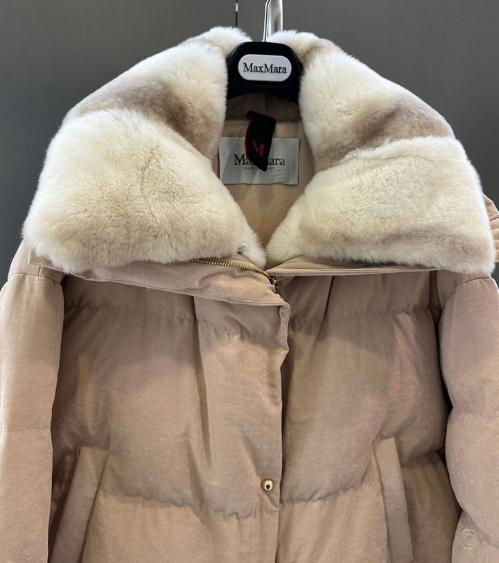 Zip and button fastening 2 front pocketsRabbit fur collarComposition: 90% goose down, 10% feathers