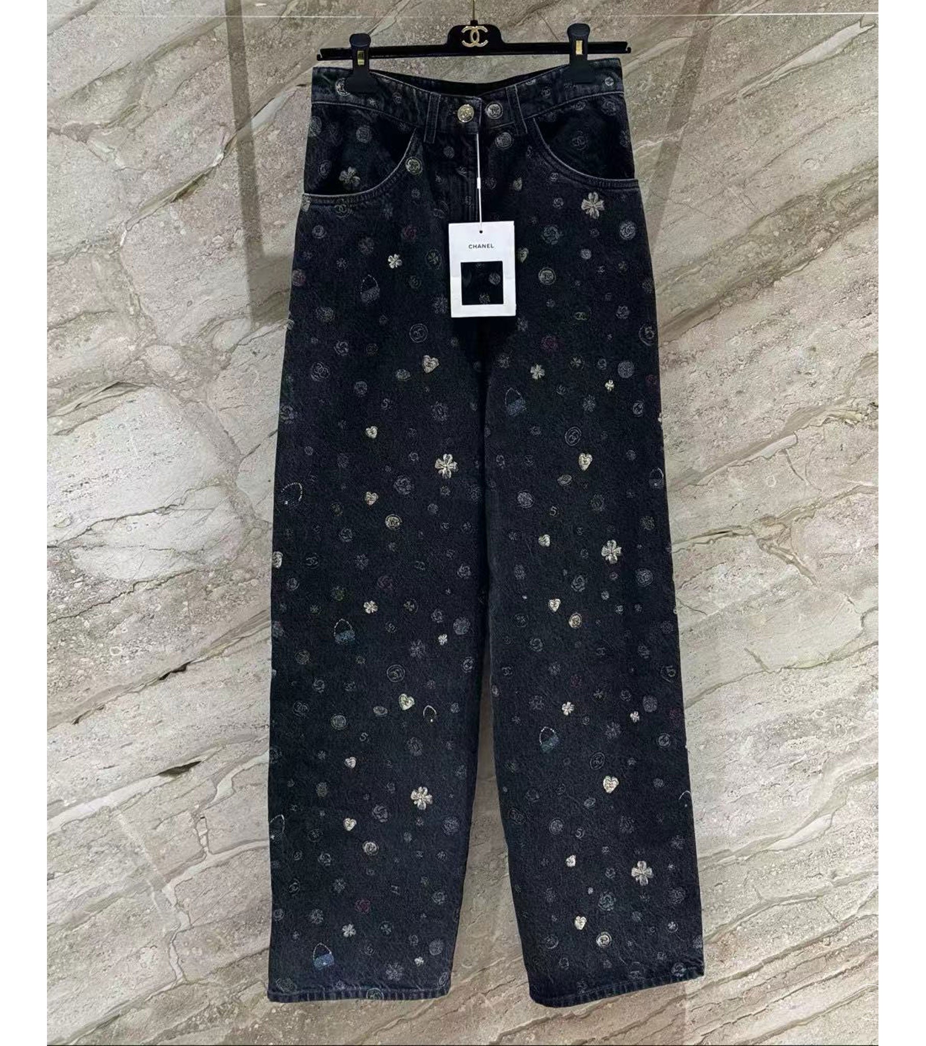 • Straight leg• High waist• Long length• Prints all over